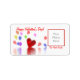 A colorful Valentine's Day photo label with balloons and a red heart. Sample text says "Happy Valentine's Day! The Heart Family", ready for you to change.