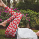 The dainty interlinked rosette design at the waist is truly unique. The poly-spandex makes for a nice fit and available in sizes 0-16. The printing is vibrant and eye-catching.