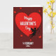 This Valentine’s Day card is rich with warmth and romance, using layers of red to create a heartfelt design. At the center, a large, bright red heart immediately draws the eye. Inside the heart, the message “Happy Valentine’s Day” appears in bold, decorative lettering, clearly marking the celebration. The background is a deep red-brown tone that adds elegance and contrast. Smaller red hearts surround the main heart, giving the feeling of love overflowing. A classic black Cupid with bow and arrow adds timeless charm. Along the bottom, “14 February” is written neatly beside three white hearts. Subtle shading on the main heart adds depth, creating a warm and inviting card perfect for sharing love.
