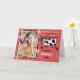 This cute Valentine's Day greeting card includes a hand-drawn cartoon cow next to your personalized photo. The cow says, "This photo of us together is such a moooood." The design has a cut-out mid-century modern look with flowers and hearts in shades of pink, black, and white. Use the easy template fields to add your photograph. You can also change "Happy Valentine's Day" to any occasion and alter the inside greeting.