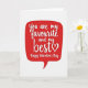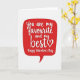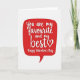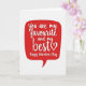 This design shows a deep red speech bubble centered on a plain white background. The bubble has rounded edges and a soft darker shadow that makes it look slightly raised, like it’s gently floating. Inside the bubble, the message is written in flowing white lettering: “You are my favourite and my be❤️t ❤️ Happy Valentine’s Day.” The text sits neatly in the middle, and the white letters look a little lifted, almost like smooth icing on top of the red shape. A small heart takes the place of the “st” in “best,” which adds a sweet little surprise without needing extra pictures. The strong red-and-white contrast makes the words easy to read and gives the card a warm, close feeling. It’s a meaningful card to give because it says both “you’re my favorite” and “you’re my best,” which fits romance or close friendship 🥰. Hope it helps you share your Valentine’s Day sentiments with someone special ❤️.