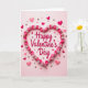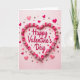 This Valentine's Day card features a deep magenta ribbon that curves into a heart shape at the center. Small white daisy-like flowers with soft pink centers sit along the ribbon, adding a gentle, sweet touch. Inside the heart, the words “Happy Valentine’s Day” appear in flowing magenta lettering, placed neatly in the middle. The background is a pale pink field with soft lighting and faint shadows that make the ribbon and flowers feel slightly raised. Around the main heart, smaller hearts in light pink and magenta are scattered across the card, along with tiny gold stars that catch your eye. The overall look feels calm and romantic, like a quiet reminder that someone is loved and appreciated 🥰. It’s meaningful to give because it pairs a simple message with a caring design that suits romance or close friendship ❤️. Share it to help pass along Valentine’s Day feelings in a warm, thoughtful way.