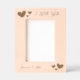 Custom wood etched frame Valentine's day gift for her with hearts. Personalized with the couple's names and a message (I love you in the example).