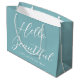 Personalized gift bags add an extra touch of luxury to any gift. This stylish design features "Hello Beautiful" in brush script typography, and can be customized with the recipient's name and a "Happy Valentine's Day" message. A versatile template that can be adapted for a birthday, bridal shower, bachelorette party, Galentine's Day, and other special occasions. Its simple, elegant design is a unique addition to your gift wrap, and a lovely choice for a girlfriend, wife, partner, daughter, or best friend. Available in either a matte or glossy finish. Printed colors: blue, blue-green turquoise and white, or customize the colors with the design tool.