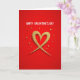 This greeting card features a large heart shape made from gold glitter right in the center, set against a deep red background. The heart looks like it was drawn with a thick sweep of gold, and a darker red glitter edge helps it stand out with a bit of depth. Around it, you can see small gold specks and tiny glitter dots scattered like confetti, adding a fun, romantic sparkle. Near the top of the card, the text reads “HAPPY VALENTINE’S DAY” in white, simple sans‑serif letters. The bright white words sit above the heart and are easy to read against the red. Overall, it feels warm, festive, and full of affection, like a little celebration on paper 💕❤️.