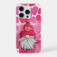 Shows a delightful phone case featuring a gnome with a charming red hat and a heart emblem. The background is adorned with various shades of pink hearts, some dotted with white, creating a cheerful and love-themed design. It seems perfect for Valentine's Day or anyone who loves whimsical, heartwarming designs!