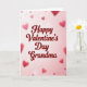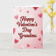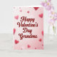 This greeting card centers on the words “Happy Valentine’s Day Grandma” in deep red, flowing cursive-style lettering placed right in the middle. Behind the message, you see many soft, blurry heart shapes scattered across the background like gentle lights. The hearts range from pale pink to rosy tones, creating a calm, dreamy setting that feels tender and sweet. The background also fades from a very light blush near the top to a deeper pink toward the bottom, adding warmth without distracting from the message. The sharp red lettering stands out clearly against the softer hearts, so your eyes go straight to “Grandma” and the love it carries. It feels meaningful because it turns a simple holiday note into a direct, caring message for someone who’s been there for you. Giving this card is a small way to say “I’m thinking of you” with real affection 🥰❤️, and it’s perfect for sharing Valentine’s Day sentiments.