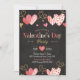 Enjoy this pretty pink heart invitation that's perfect for any Valentine's Day party. This design features watercolor hearts, script typography, and pink with a chalkboard background!