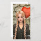 3D digital render of a beautiful teenager girl in a retro dress holding a balloon in a heart form on a stone wall background. Perfect Valentine's Day gift