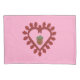 This awesome double sided pillowcase features a digital art image of an acorn surrounded by a red heart. The acorn is brown with a green cap and cute little eyes with black pupils and a smile on its face. the heart surrounding the acorn has a series of pretty red oak leaves attached to it pointing outside the heart creating a beautiful leafy pattern.