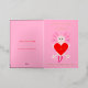 This awesome Foil Wedding card features a digital art image of a cute axolotl, a Mexican Salamander, holding a red heart. The Axolotl is pale pink with huge black eyes and a big pink smile. It has bright pink feathery gills on the side of its head and a bright pink plume on its tail. There is custom text inside the heart so you can include initials. There is custom text inside so you can personalize this card. The custom text on the front is in beautiful gold foil.