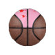 This awesome basketball features a digital art image of a cute axolotl, a Mexican Salamander, holding a red heart. The Axolotl is pale pink with huge black eyes and a big pink smile. It has bright pink feathery gills on the side of its head and a bright pink plume on its tail. There is pink text inside the heart that reads Love You a Lotl. There is custom text so you can include names.