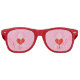 This awesome pair of party shades features a digital art image of a cute axolotl, a Mexican Salamander, holding a red heart. The Axolotl is pale pink with huge black eyes and a big pink smile. It has bright pink feathery gills on the side of its head and a bright pink plume on its tail. There is pink text inside the heart that reads Love You a Lotl.