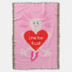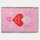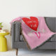 This awesome blanket features a digital art image of a cute axolotl, a Mexican Salamander, holding a red heart. The Axolotl is pale pink with huge black eyes and a big pink smile. It has bright pink feathery gills on the side of its head and a bright pink plume on its tail. There is pink text inside the heart that reads Love You a Lotl.