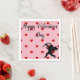 Valentines Day napkins with pink background and hearts and image of cupid.