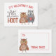 Enhance your child's Valentine's Day with our classroom valentine card pack of 25! Each 3.5" x 2.5" card features charming watercolor owls holding a red heart, saying 'let's have a hoot.' These pocket-sized cards are not only adorable but also customizable with your child's name. The back provides space to write in classmates' names, adding a personal touch. Embrace affordability by opting for the pack, perfect for moms seeking a stress-free yet impressive Valentine's Day. Punch a hole and tie with ribbon to effortlessly attach these cards to goody bags, creating unique treats for your child's class and teacher.