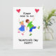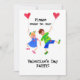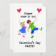 A Valentine's Day Party Invitation with two kids holding heart-shaped balloons, from a handpainted paper collage by Judy Adamson. The reverse of the card is left blank for you to fill in the details and please contact me through my store if you'd like me to change the front text in some way.