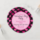 Fun round invitations for a Valentine's Day party. These have a pink and black heart pattern on both sides. On the front, you can personalize them with your details. These cute invites can be made for a Valentine's Day potluck, craft party, dinner and dance, or whatever strikes your mood. Come up with something totally cool and original if you want. These will work for kids as well as adults.