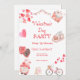 Invite your friends to a Valentine's Day party with these adorable pink and red invitation featuring watercolor hearts, envelopes, and glittery .