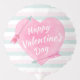 Balloon in pastel pink and mint colors with watercolor heart and arrows illustration, stripes background and text "Happy Valentine's Day".