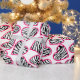 This wrapping paper features a unique and delightful design that combines the distinctive zebra stripes with the timeless appeal of black and white hearts, all framed by a delicate pink outline. The result is a striking yet charming pattern that seamlessly blends zebra patterns with heart motifs.