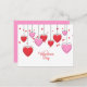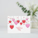 Beautifully vector illustrated Valentine's Day postcard depicting pink and red hearts on black strings (front and back) with "Happy Valentine's Day" type.