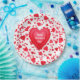 This fun Valentine's Day design features a sprinkle of confetti hearts in shades of red. Personalize with your own message