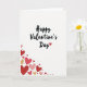 This greeting card features a bright white background with “Happy Valentine’s Day” written large across the upper center in dark lettering, giving the message a confident, romantic focus 🥰. The letters flow smoothly and feel like they were written with care, as if someone took a quiet moment to say something sweet ❤️. Along the lower left corner, a cluster of hearts begins to gather and then drifts upward, spreading lightly across the bottom edge like confetti. The hearts come in classic red, soft pink, and warm gold tones, with gentle shading that makes them look slightly rounded. Their different sizes create a sense of movement, like little signals of affection floating toward the words above. The layout stays open and uncluttered, with the text clearly separated from the heart trail so your eyes can travel from the greeting down to the decorations. A tiny red heart replaces the dot in “Day,” tucked neatly into the lettering as a small, bright detail.