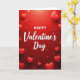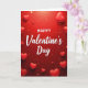 This greeting card shows a rich red background that shifts from a brighter scarlet glow near the top to a deeper crimson toward the bottom. Across the center, the words “Happy Valentine’s Day” appear in flowing white lettering, standing out clearly against the red. Shiny red hearts of different sizes are scattered around the message, with light catching them so they look glossy and rounded. Some hearts sit close to the edges, making it feel like the love continues beyond the card. Soft golden dots of light float over the scene like little sparkles, adding a gentle, dreamy touch. The overall look feels warm and romantic, without being too busy, and it’s easy to imagine giving it to someone you care about ❤️. It works just as well for a partner as it does for a close friend you appreciate 🥰.