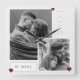 A stunning and functional wall accent featuring a romantic photo collage. The design displays two cherished couple photos in a monochromatic (black and white) style. It is highlighted by distinct red hearts and the romantic phrases "LOVE" and "BE MINE". The square shape and clock hands turn this piece into a timeless and practical gift.