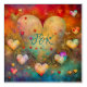 Abstract art hearts in red, teal and blue. Cute for Valentine's Day or any romantic occasion. Paper mache hearts.