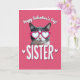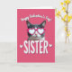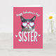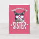 This card shows a black-and-white tuxedo cat centered on a solid magenta background, looking straight at you with a calm, slightly curious face. The cat wears fuchsia heart-shaped sunglasses, and the lenses look a bit see-through, which makes the whole look feel sweet and romantic ❤️. Near the top, the words “Happy Valentine’s Day!” appear in white, in a flowing, cursive-style lettering that arches over the cat’s head. Near the bottom, “SISTER” is written in white, all caps, and it sits between two small white hearts. The bright pink backdrop and the heart glasses make the card feel fun, while the cat’s steady gaze keeps it warm and sincere. It’s a meaningful choice if you want to show love and closeness to your sister without needing a lot of extra words. Share it to help pass along Valentine’s Day feelings with someone you care about 🥰.