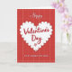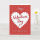 This Valentine's Day card features a large white heart with a scalloped edge centered on a deep crimson background with a faint plaid pattern. Small green touches sit inside each scallop, adding a gentle detail around the border. The heart stands out clearly against the red, giving the whole front a cozy, romantic feel ❤️. The text “Happy Valentine’s Day” appears in a flowing cursive style, with “Happy” in white above the heart and “Valentine’s Day” in dark red inside the heart. A small “xo” is included near the main message, adding a sweet, close-to-the-heart note 🥰. Along the bottom, “TO MY DEAREST STEP MOM” is written in clear capital letters, making it obvious who this is meant for. It feels meaningful because it combines a classic Valentine look with a specific note of love and appreciation, making it easy to share Valentine’s Day sentiments.