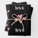 Sleek Valentines Day wrapping paper for your special someone. Black background with pink hearts and white "Love" lettering.