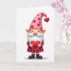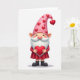 This card shows a cheerful gnome centered on a plain white background, bringing a cozy Valentine’s feel. It wears a tall, soft pink hat that curves at the top and is covered with small red hearts, with one heart hanging from the tip. The gnome has dark eyes looking forward, rosy cheeks, and a round nose that makes it look friendly and sweet. A long white beard flows down the front, standing out against its deep red robe. It has rounded black boots and holds a large red heart out in front as if offering it to someone special 💘. There is no text on the card, so the gnome and the heart are the main focus ❤️.