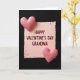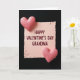 On the front of the card a blush-pink note with torn edges sits against a deep black background. In the center, the message “HAPPY VALENTINE’S DAY GRANDMA” is written in dark crimson letters that look simple and easy to read. The words stand out clearly and feel direct, like something you really mean. Two dusty-rose hearts add a sweet touch, with one near the upper left corner and the other near the lower right. Their surface looks lightly textured, almost like soft sugar or velvet, and the gentle shadows make them feel cozy. The dark background keeps everything focused on the soft pink and red, which fits a caring Valentine’s Day message ❤️. It’s a meaningful card to give because it feels calm, loving, and made especially for Grandma 🥰.