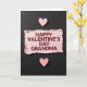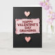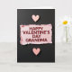 This greeting card shows a matte black background with a pale pink rectangle of paper in the center, and the edges look gently torn. On the pink piece, the message “HAPPY VALENTINE’S DAY GRANDMA” is printed in deep red with a sparkly, metallic look, and it sits right in the middle. A pale pink heart is placed above the message and another matching heart sits below it, both smooth and neatly shaped. The lighting is soft and even, so the hearts and the torn paper edges stand out without any harsh shadows. The strong contrast of black, pink, and red makes the words feel extra important and easy to notice. It feels meaningful because it’s simple, focused, and clearly meant for Grandma, with love shown in a quiet, thoughtful way 🥰❤️. It’s a sweet way to share Valentine’s Day sentiments with someone you care about.