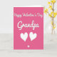 This Valentine's Day card has a rich fuchsia background that fills the whole front and sets a warm, loving tone ❤️. In the center, the message reads “Happy Valentine’s Day Grandpa” in smooth, flowing white letters that look like cursive handwriting. The words stand out clearly against the pink and feel like a direct note meant just for him. Under the text, there are three white hearts arranged neatly. Two larger hearts sit side by side, and a smaller heart is centered just below them, like a little extra kiss at the end 🥰. The simple shapes and strong color contrast keep the focus on your love and appreciation. Giving this card feels meaningful because it names “Grandpa” right on the front, making the affection feel specific and real.