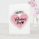 This greeting card features a large heart in the center on a plain white background. The heart has a soft blush-pink fill, a thin coral outline that looks lightly drawn, and a white edge that helps it stand out. Inside the heart, the words “Happy Valentine’s Day” are placed across the middle in two different letter styles. “HAPPY” is written in black, all caps, in a simple printed look, with tiny black hearts tucked in as small accents. “Valentine’s Day” sits just below it in a smoother, flowing black letter style, and the word “Day” includes a black heart shape as part of the lettering. Small black dots are scattered across the pink area like little speckles, adding a relaxed, sweet detail. It feels meaningful to give because it’s direct and warm, with a classic heart and a clear message that fits romance or close friendship 🥰❤️. Hope it helps you share Valentine’s Day sentiments with someone you care about.