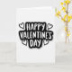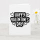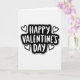 This greeting card features the words “HAPPY VALENTINE’S DAY” in large white brush-style lettering centered inside a rounded black shape. The black shape has uneven edges, almost like a sticker, and it sits on a plain white background with a soft gray shadow behind it. Two simple heart outlines appear above the word “HAPPY,” and two more sit below the word “DAY.” The hearts are white inside with black outlines, matching the black-and-white look of the card. The message is easy to read and feels direct, sweet, and modern 💘. With only black, white, and a touch of gray, the design keeps the focus on love and the greeting itself ❤️. It’s a simple way to share Valentine’s Day sentiments with someone you care about.