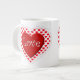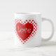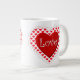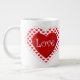 Jumbo mug with a big red heart valentine on it and the word Love written on it. Stuff the mug with gifts and Valentines candies for a Valentine gift basket mug.