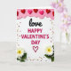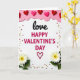 This greeting card features a flat-lay arrangement on a bright white background, with the main message centered to feel like a sweet note left out for someone special 🥰. In the middle, the word “love” appears in dark, flowing lettering, followed by “HAPPY VALENTINE’S DAY” in magenta letters that stand out clearly. Along the top edge, a soft pink wavy band supports a row of puffy hearts that alternate deep red and fuchsia, each with a small shadow that makes them look raised. Tiny gold stars and glossy red beads trail down both sides, like little sparkles leading your eyes back to the words ❤️. In the lower corners, two white daisies with sunny yellow centers and green leaves add a gentle, just-picked touch that pairs nicely with the hearts. Beneath the main line of text, a simple red heart outline sits like a quiet extra note. Bright, even lighting keeps the background crisp while highlighting the pink border, the alternating hearts, and the scattered stars and beads.