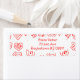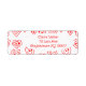 These return address labels have a mid-century modern Valentine’s design of scattered red heart mazes on a field of white.