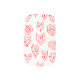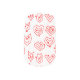 This nail art has a mid-century modern Valentine’s design of scattered red heart mazes on a field of white.