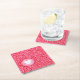 This paper coaster is shown in a festive pink and red Valentine's heart print.
