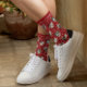 These socks are soft and comfortable. Good fit, the elastic around the calf does not leave a mark. The print is true to color, with colorful designs. The cookie trail and Christmas lights around the reindeer antlers are crisp and not blurry. .
