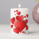 This pillar candle is shown in White with a festive Valentine hearts print.