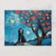 Beautiful Valentine's Day postcard with a couple in love near a tree of hearts under a starry "Van Gogh" night. .. Ai Generated!