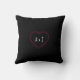 Customizable Valentine's Day photo throw pillow with a bouquet of red roses. Square pouf pillow with heart shaped rose photo frame has a black background on the front and back, with your initials on the back of the pillow. Photo can be cropped and positioned to fit in the heart shape. Layers may need to be turned off temporarily to move around your photo.