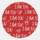 Valentine's theme Red White I love You Pattern Classic Round Sticker